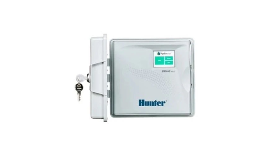 A Hunter Pro-HC egy professzionális, Wi-Fi-képes öntözésvezérlő család, amelyet kifejezetten lakóépületekhez és kisebb kereskedelmi öntözőrendszerekhez terveztek. Masszív kültéri kivitelének, dupla ajtós kialakításának és IP44 védettségének köszönhetően megbízhatóan működik változó időjárási körülmények között is. A Pro-HC egységek fix kivitelben érhetők el 6, 12 vagy 24 öntözőszakaszhoz, így ideálisak új telepítésekhez és korszerűsítésekhez egyaránt. A helyi beállításokat egy 7 cm-es, színes érintőképernyő teszi gyorssá és átláthatóvá, internetkapcsolat nélkül is.