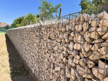 A gabion kerítések hazánkban talán kevésbé ismertek, azonban a környező országokban gyakran találkozhatunk vele. Azoknak javasoljuk, akiknek erősebb, akár tartó szerepet is betöltő kerítésre vagy gyengébb támfalra van szükségük. A fenti kivitelezés egy iskola oldal kerítése, amelynél nagy szerepet játszott a teljes belátásgátlás, valamint, a teherbírás.