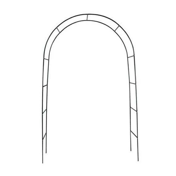 A rózsakapu íves kialakítású, mérete 140x37x240 cm, amely ideális választás kertek és udvarok díszítésére. Stabil és tartós szerkezetével hosszú távon biztosítja a rózsák és más kúszónövények támasztékát.